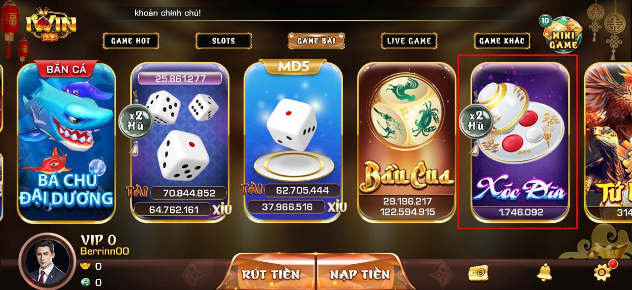 Thế giới xóc dĩa hấp dẫn tại iwin